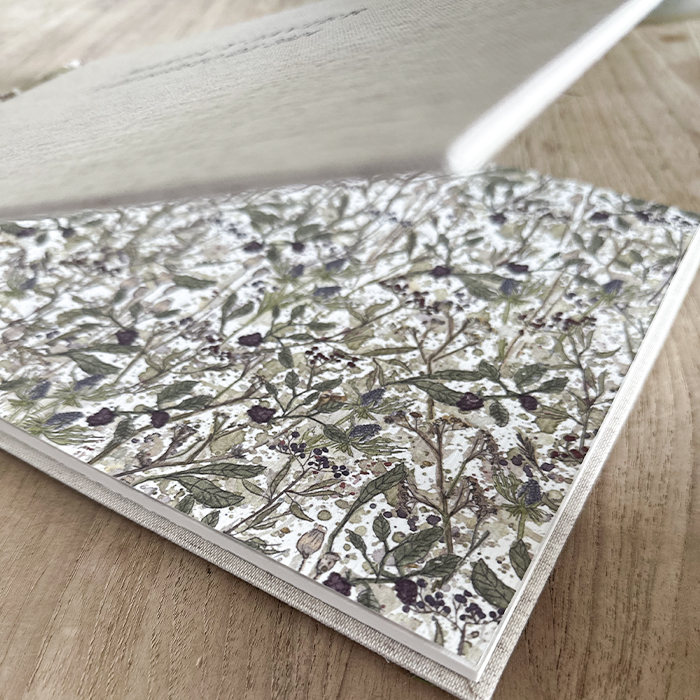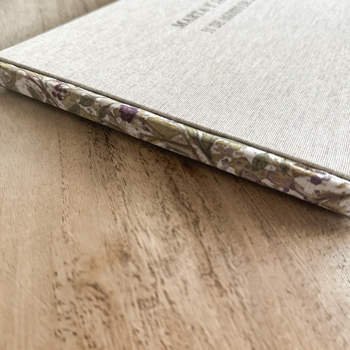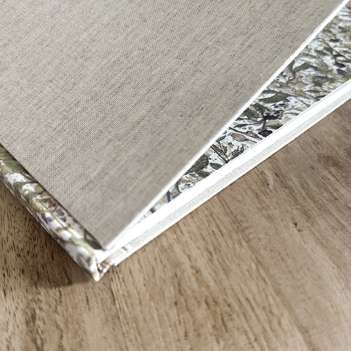 Nuestros álbumes de fotos artesanales son muy especiales. Están hechos a mano con telas de lino combinadas. Los lomos y las guardas están llenas de flores, con nuestro estampado Hindbaer.