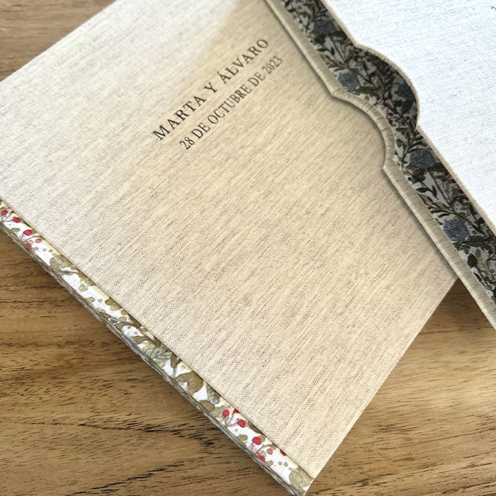 Nuestros álbumes de fotos artesanales son muy especiales. Forrados a mano con telas de lino combinadas. Los lomos y las guardas están llenas de flores, con nuestro estampado Homblomster.