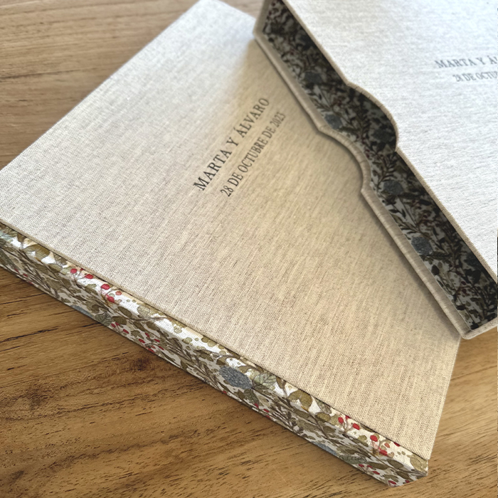 Nuestros álbumes de fotos artesanales son muy especiales. Forrados a mano con telas de lino combinadas. Los lomos y las guardas están llenas de flores, con nuestro estampado Muy de Cantabria.