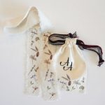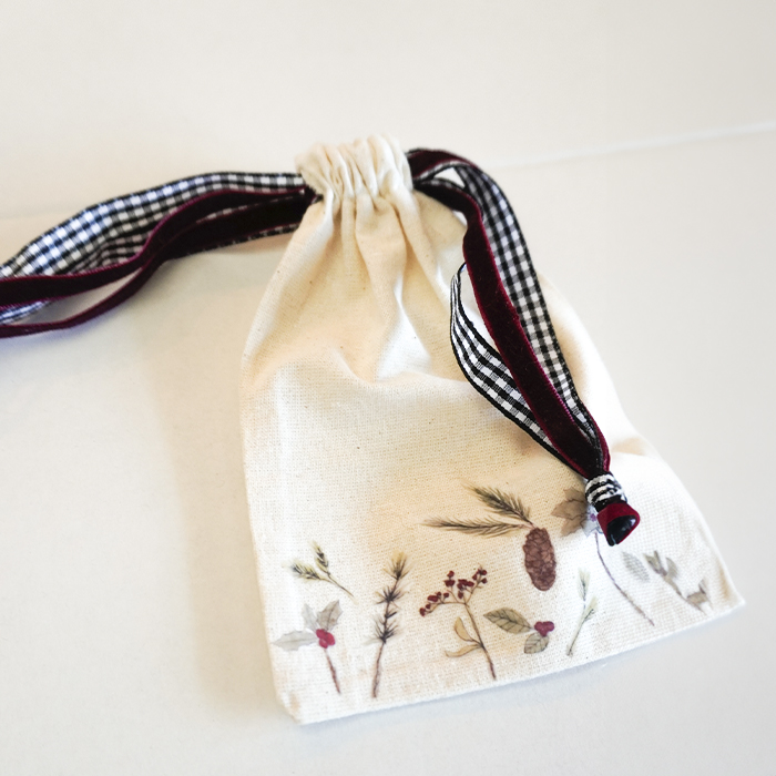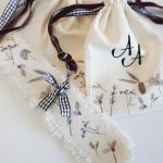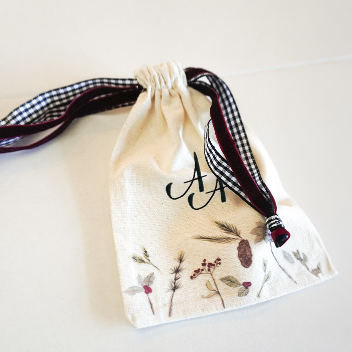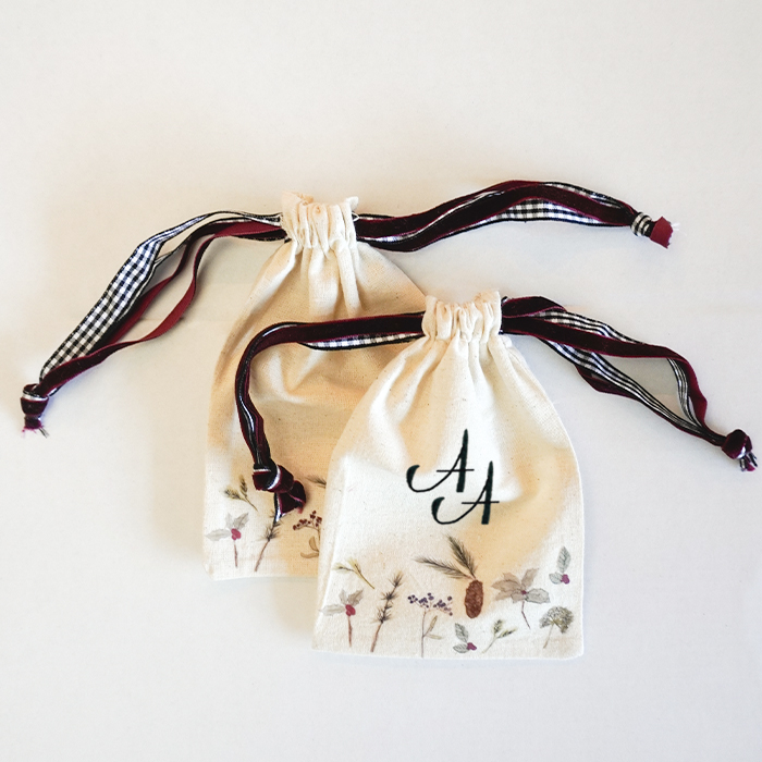 Bolsita llena de flores del estampado Navideño para transportar vuestras alianzas hasta el altar. Se cierran con un lazo de terciopelo, y por dentro tienen otro para asegurar las alianzas.