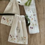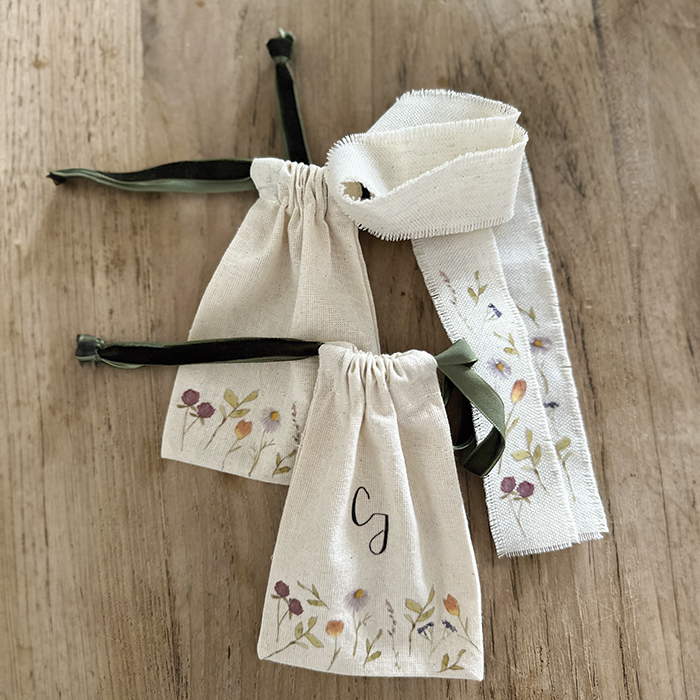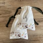 Bolsita llena de flores del estampado Purathara para transportar vuestras alianzas hasta el altar. Se cierran con un lazo de terciopelo, y por dentro tienen otro para asegurar las alianzas.