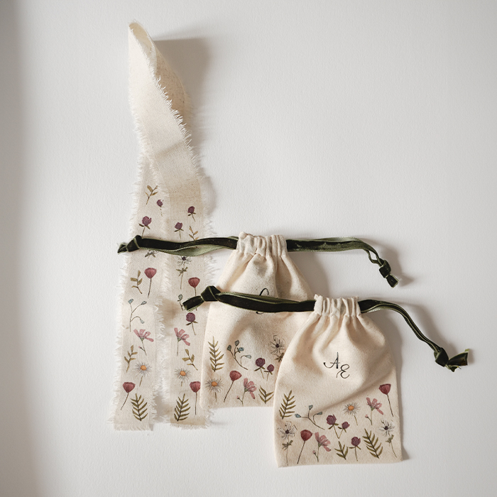 Con las flores de nuestro estampado Forår a juego con vuestras invitaciones.