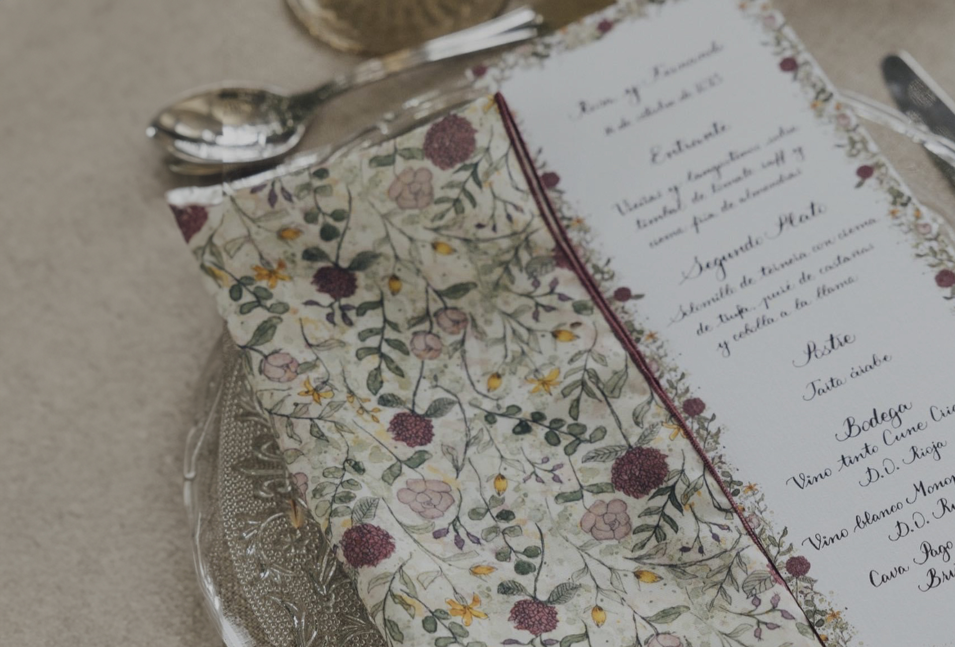 Y qué mejor manera de guardar este recuerdo tan bonito, que con un libro de firmas hecho artesanalmente, con hojas cosidas a mano y guardas estampadas, que pueden ir a juego con el estampado de vuestras invitaciones.