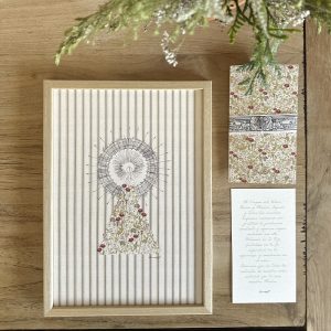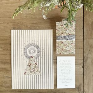 Y qué mejor manera de acompañar este momento tan especial que con nuestra cinta con las flores de estampado Grabader, a juego con sus recordatorios.