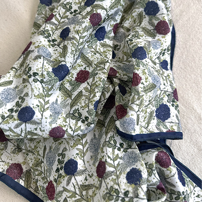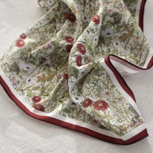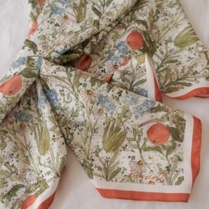 Pañuelo llenito de nuestro estampado Muy de Cantabria, diseñado con mucha delicadeza, para que cada motivo esté colocado en el lugar ideal. Tamaño 65×65 y acabado en satén.