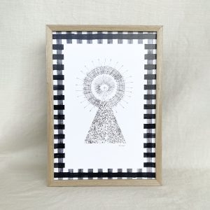 Nuestra icónica Virgen del Pilar es una delicada reproducción de nuestra acuarela de la Virgen del Pilar, hecha a mano, con el manto repleto de flores en tonos azules. Es ideal para decorar cualquier rincón del hogar.